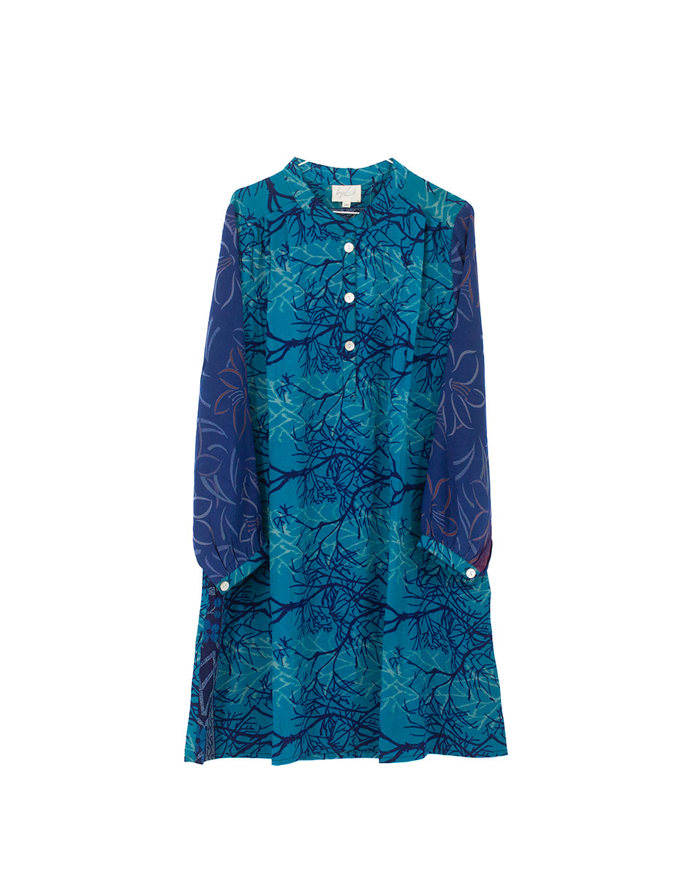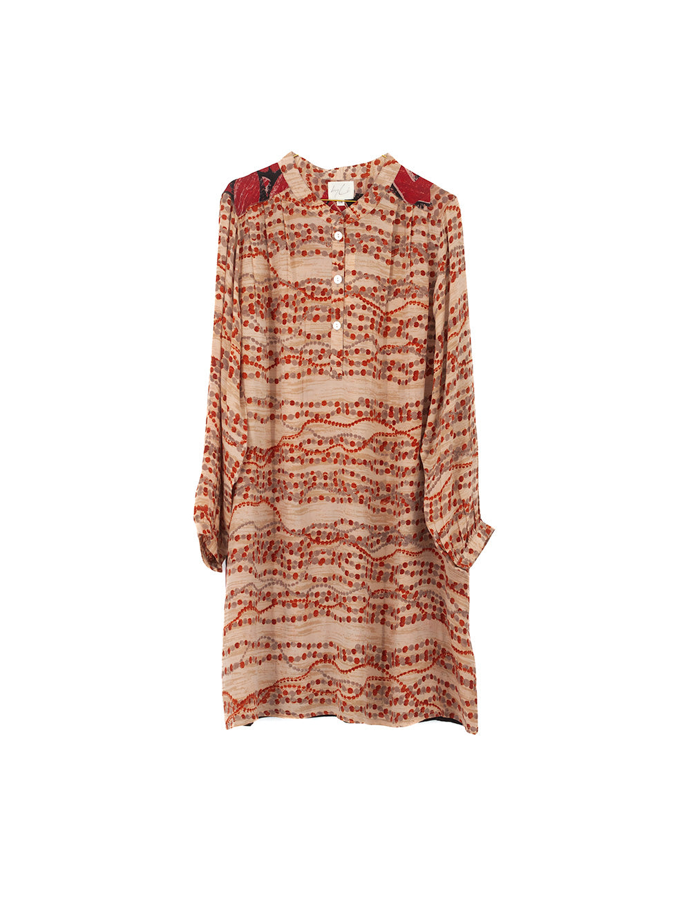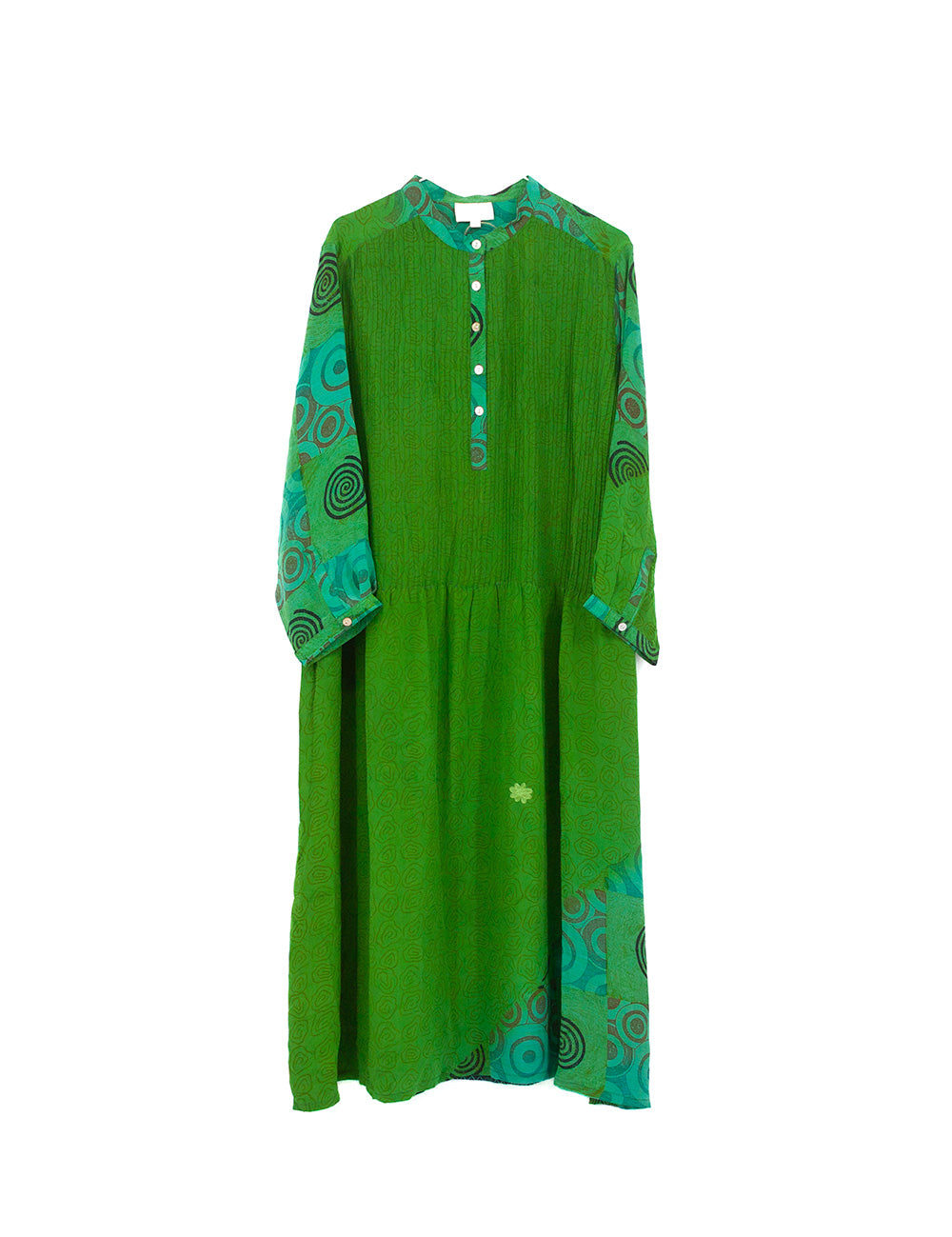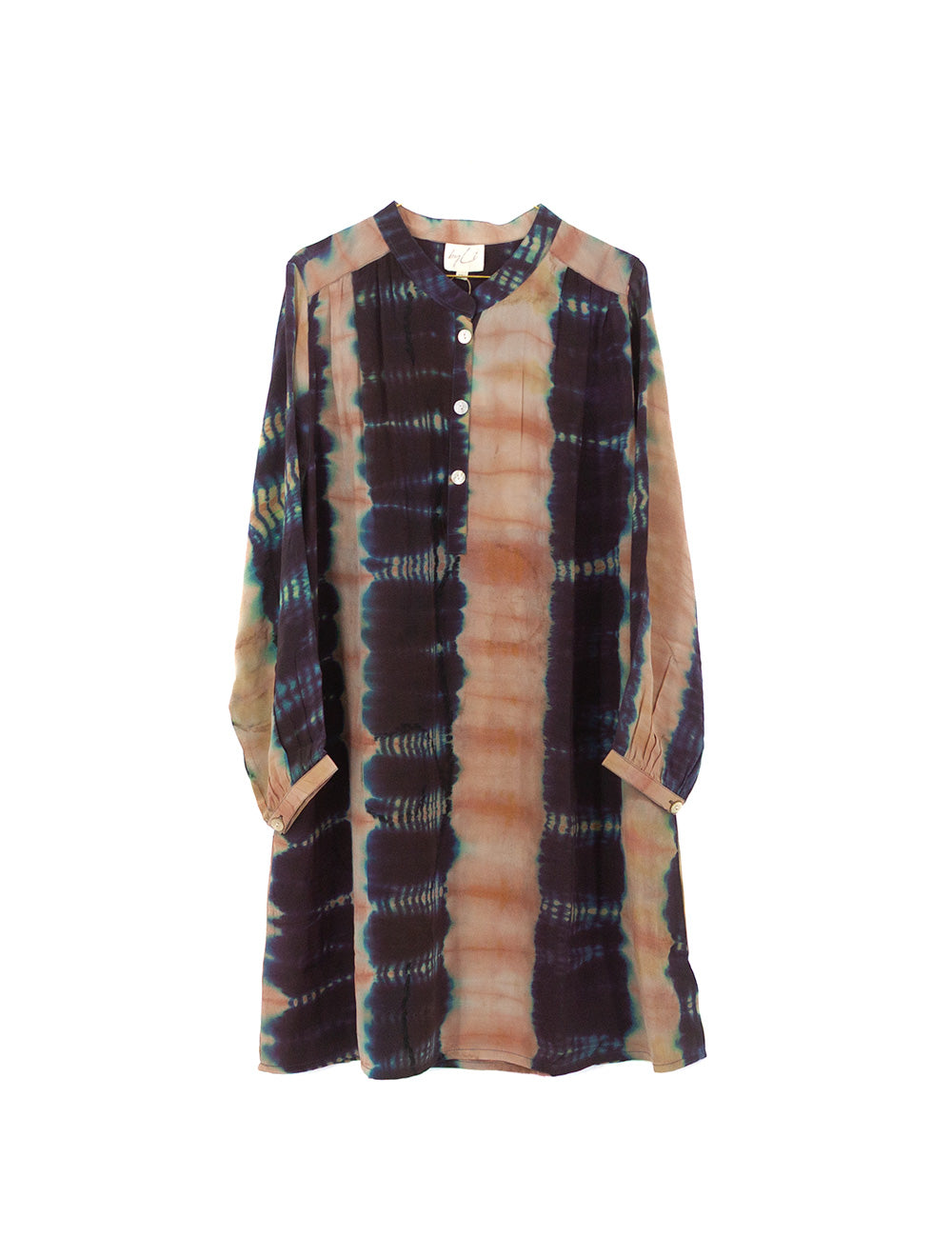 Denne charmerende og afslappede skjortekjole er lavet af genbrugte indiske silke sarier. Selvom den er...