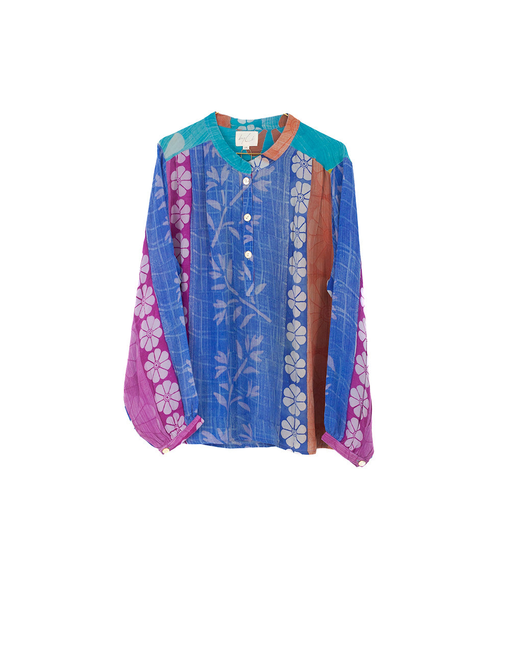 Den fine Anne Maria bluse er lavet af genbrugte indiske silke sarier. Selvom den er fremstillet af de fineste materialer, kan stoffet have små tegn på at være brugt. Dette gør hvert design helt unikt og med sin egen særlige historie. Vi håber du vil bringe historien videre med kærlighed og respekt