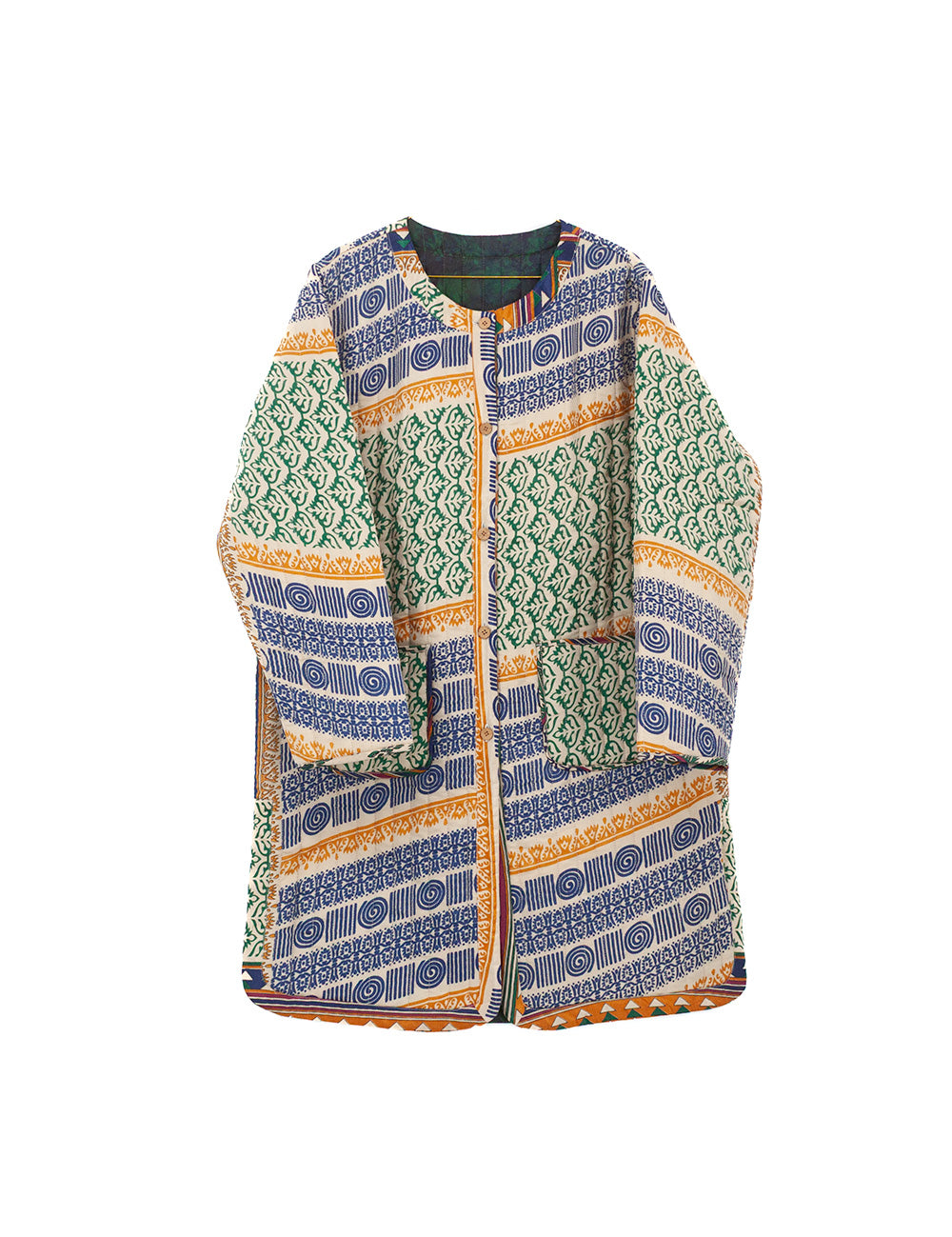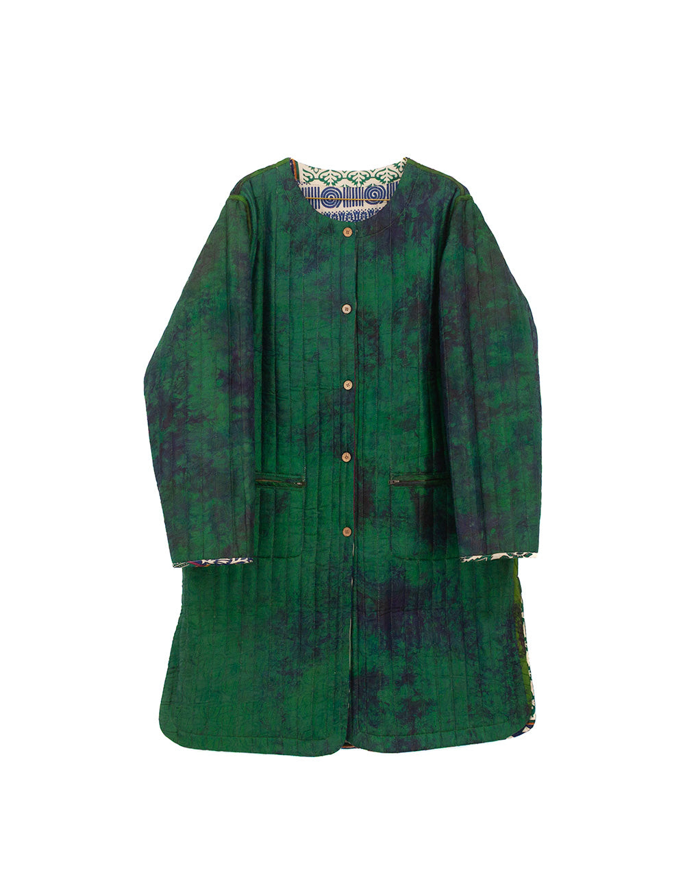 Mellemlang quiltet jakke med dobbeltslids lavet af genbrugte indiske