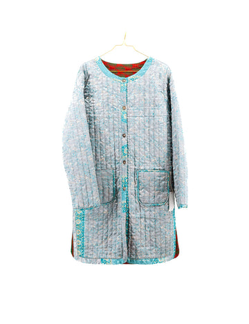 Mellemlang quiltet jakke med dobbeltslids lavet af genbrugte indiske