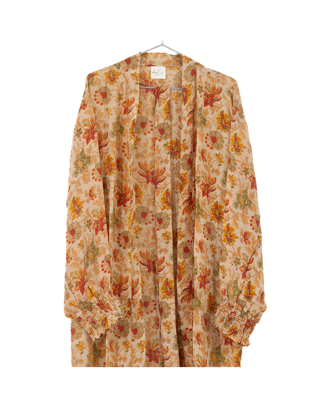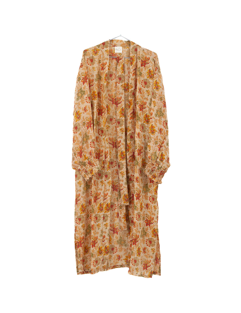 The Silvia kimono has long sleeves with smock elastic ends and a fine detachable belt.