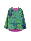 Short quilted jacket made from recycled Indian silk saris. The jacket is