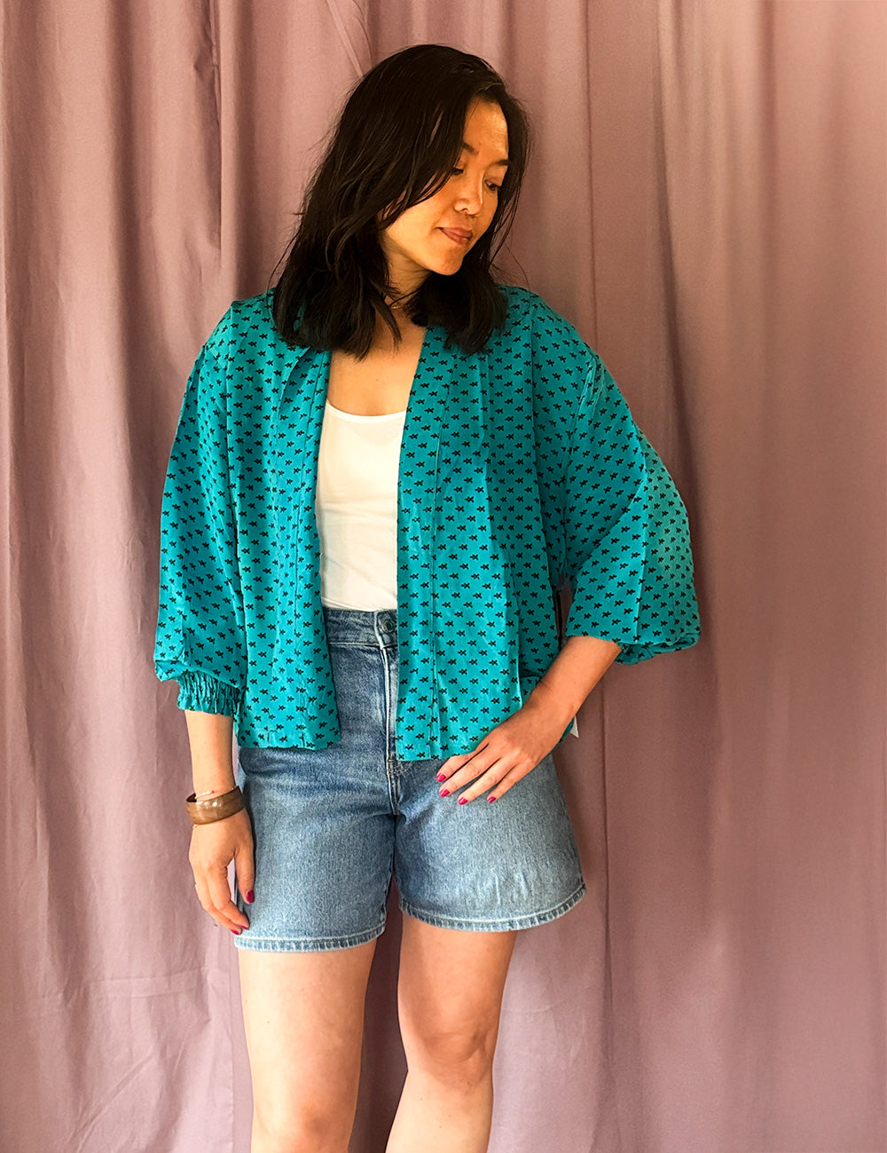 The kimono can be worn as a loose shirt or with a top and a pair of tight jeans.