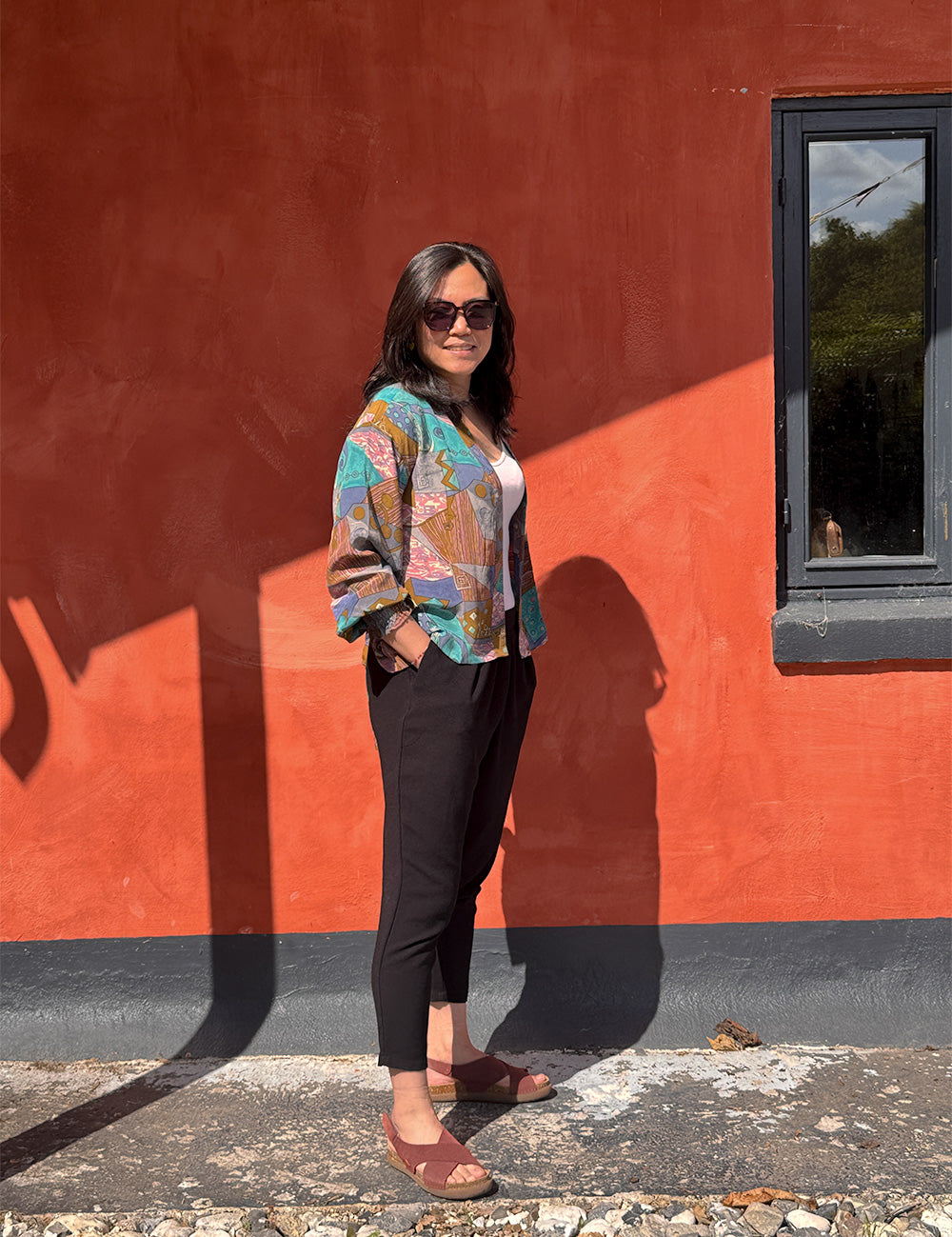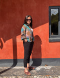 Silvia kimonoen med det helt særlige design er lavet af nøje udvalgte brugte silke sarier, og hver sari kan kun laves til en kimono. Dette gør hver kimono til et unika.
