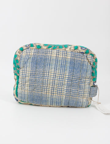 Quiltet Ipad cover eller toilettaske lavet af genbrugte indiske silkesarier. YKK lynslås og inderfor af bomuld. Tasken har en lille strop, så den kan hænges på en knag.